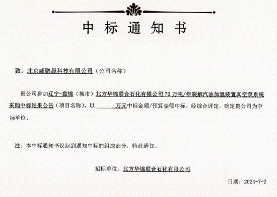 喜报连连——我司中标北方华锦联合石化有限公司70万吨/年裂解汽油加氢装置真空泵系统项目