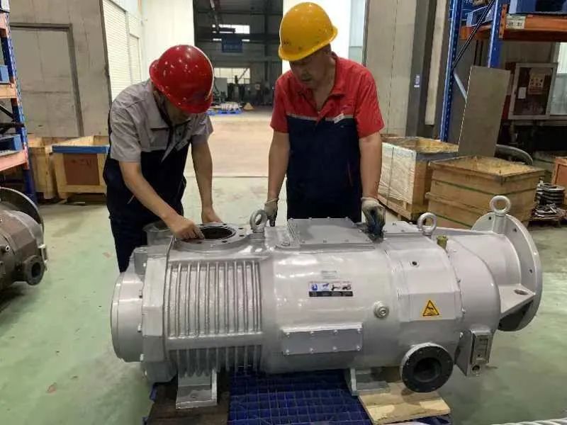 眼下,威鹏晟老厂房的装配车间内还正在进行P2700型号的干式真空泵螺杆真空泵的组装工作,这款产品是公司的“拳头产品”,因为抽气量大、噪音小、运行稳定,目前在国内市场广受好评,在化工、医药、油气回收等领域应用广泛。